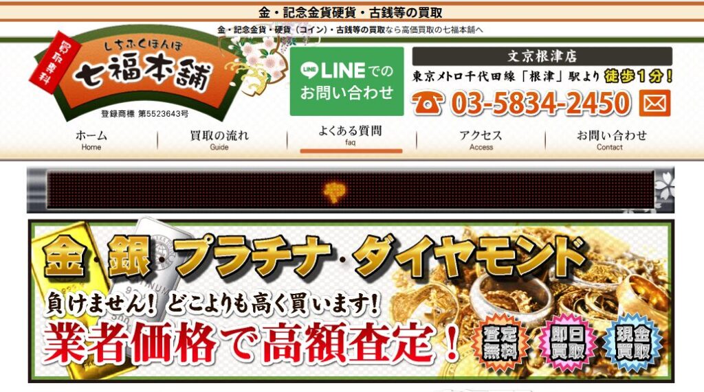 | 第5位 | 七福本舗 | 古銭や切手など収集品専門 | 専門知識のある鑑定士が査定 | 東京中心+宅配可 |