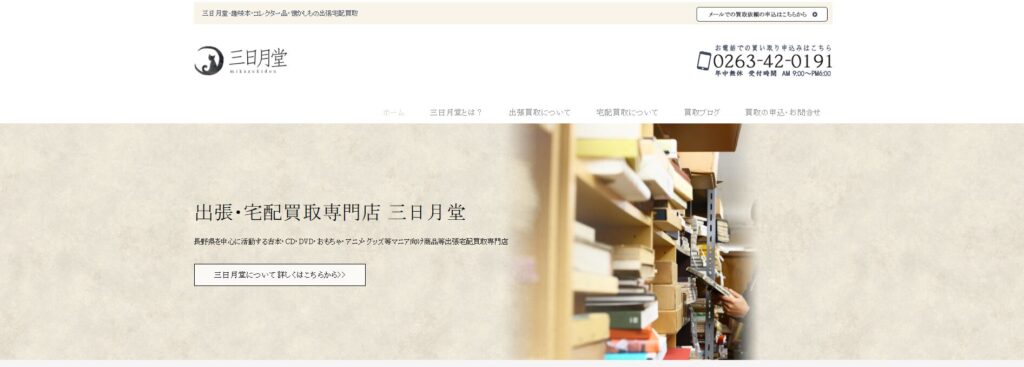 三日月堂は長野県を拠点に、趣味・嗜好品を中心とした幅広いジャンルの品を取り扱う出張・宅配買取専門店です。