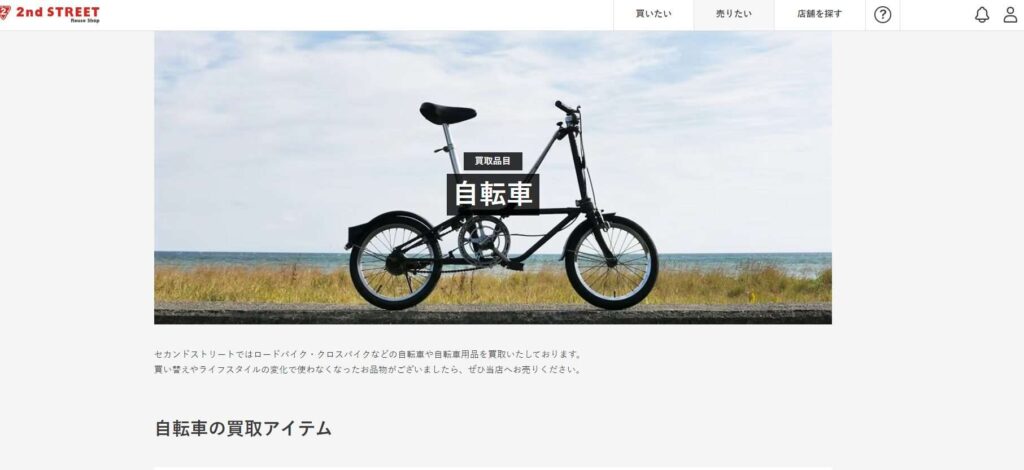 ハードオフでは家財道具などの買取以外に、自転車の査定も行い、さらにロードバイクも含まれています。店舗持ち込みで査定&買取が可能。